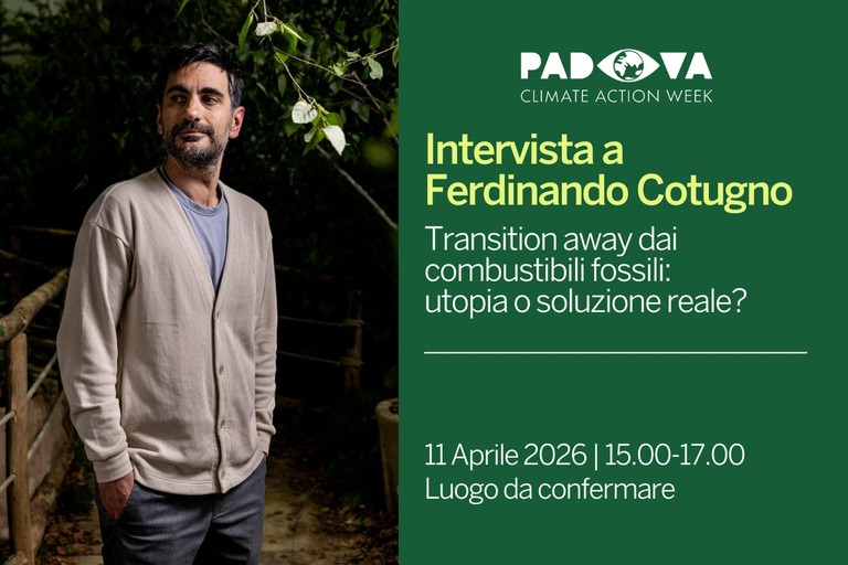 Evento inaugurale della Padova Climate Action Week, questo incontro propone un dialogo tra Ferdinando Cotugno, giornalista e autore esperto di temi climatici, e Daniele Pernigotti A partire dalle sfide energetiche, climatiche e industriali del nostro tempo, l’intervista offrirà una riflessione aperta e concreta sulla transizione oltre i combustibili fossili, tra urgenza, fattibilità e visione di futuro.